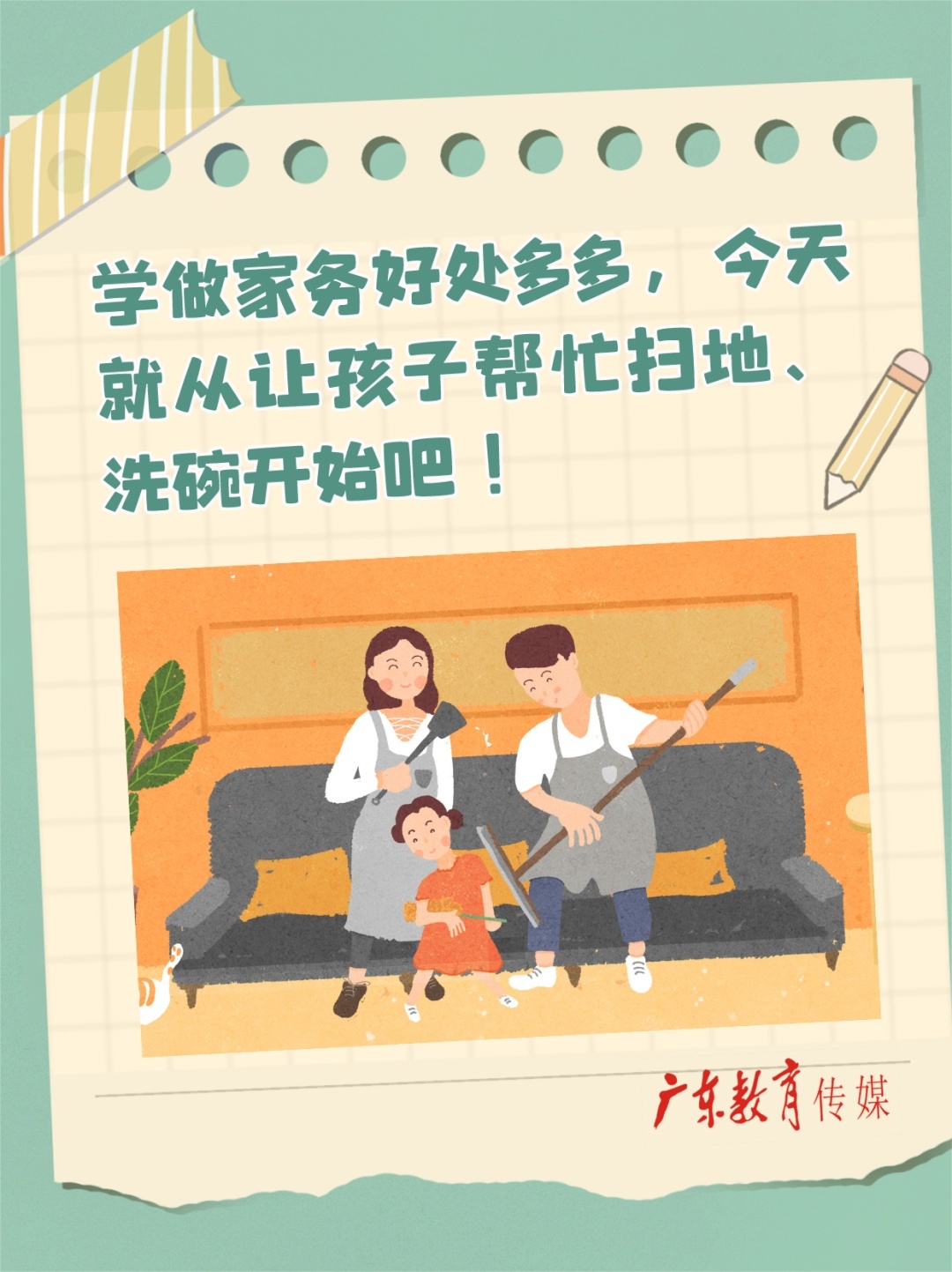 ◆ 要让孩子意识到“做家务是每个家庭成员的责任”,但不要刻意强调做家务的任务性;