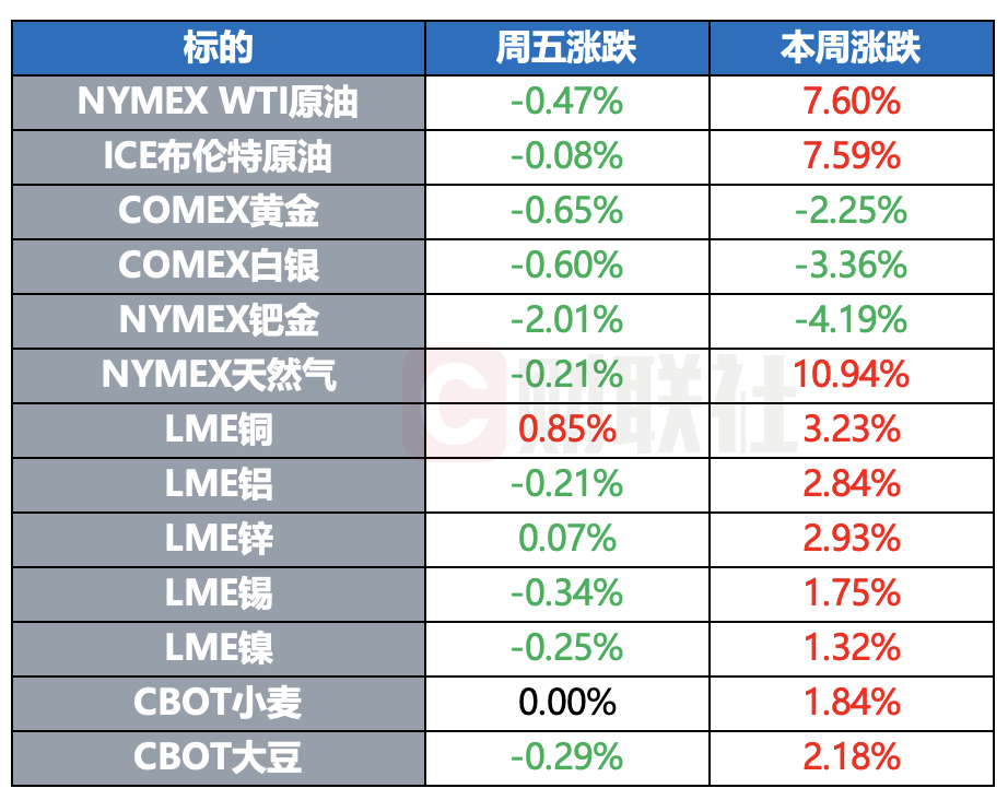 COMEX黄金期货跌0.65%,报4118.5元/盎司,本周累跌2.25%。COMEX白银期货跌0.6%,报48.42美元/盎司,本周累跌3.36%。